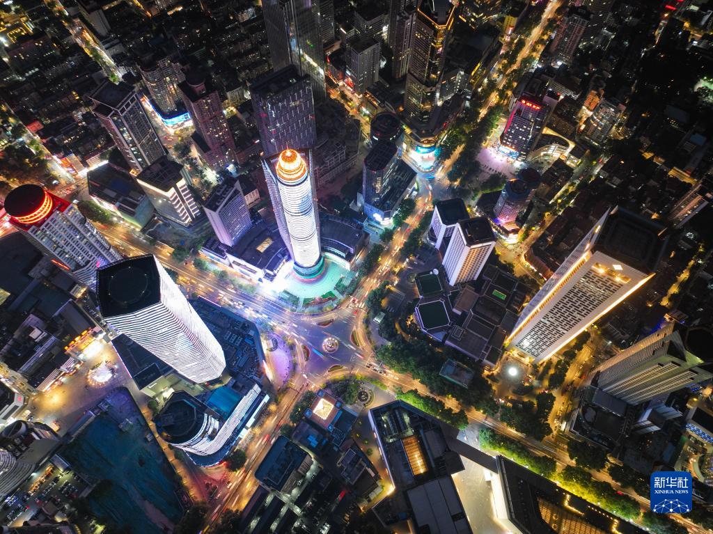 江苏南京新街口夜景(6月12日摄,无人机照片)。新华社记者季春鹏 摄