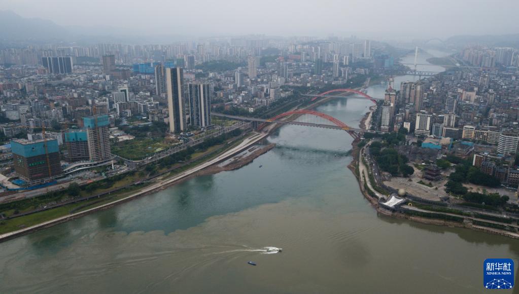 这是2022年6月30日在四川省宜宾市拍摄的三江口景色(无人机照片)。新华社记者王曦 摄