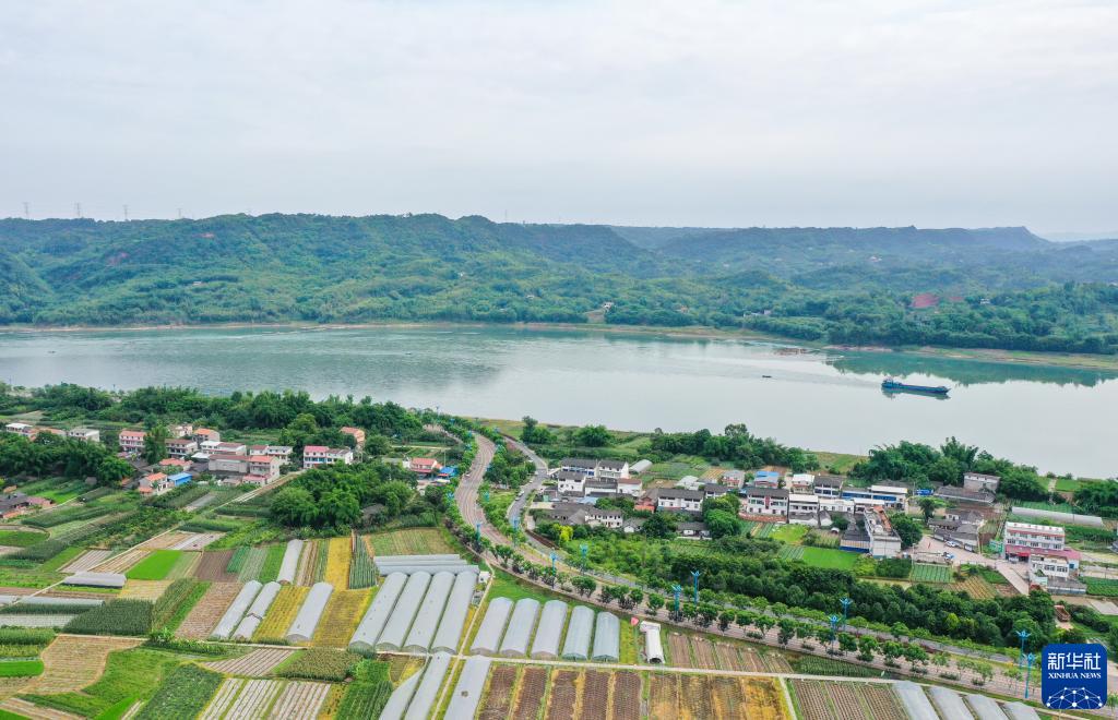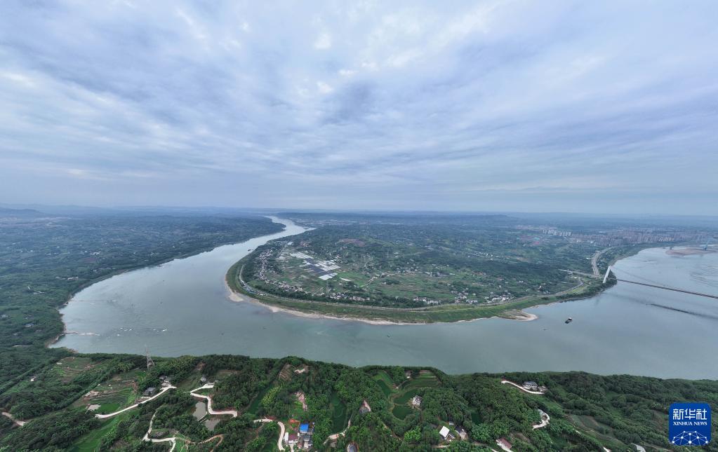 这是6月29日在四川省宜宾市南溪区长江边拍摄的长江村(无人机照片)。这里的南溪·长江第一湾、长江湿地等水域景观成为该村发展农旅融合的基础。新华社记者江宏景 摄