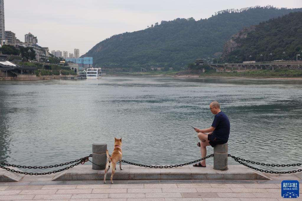 一位市民在四川省宜宾市三江口江边休息(6月28日摄)。新华社记者金立旺 摄