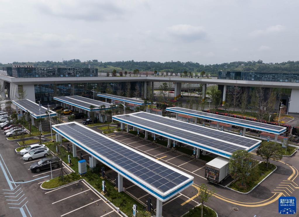 这是6月29日在四川省宜宾市三江新区东部产业园能源港拍摄的光伏雨棚(无人机照片)。新华社记者江宏景 摄