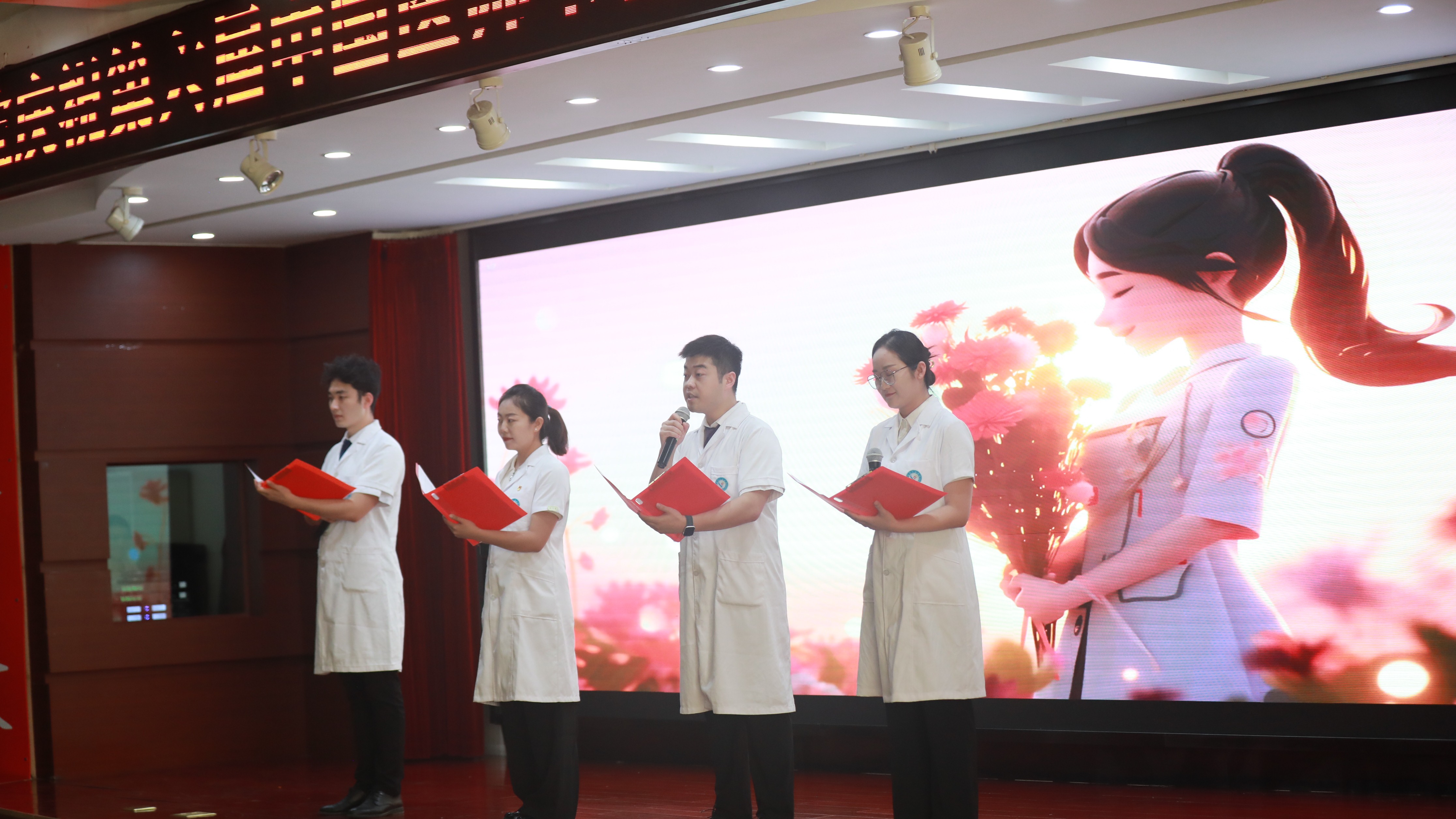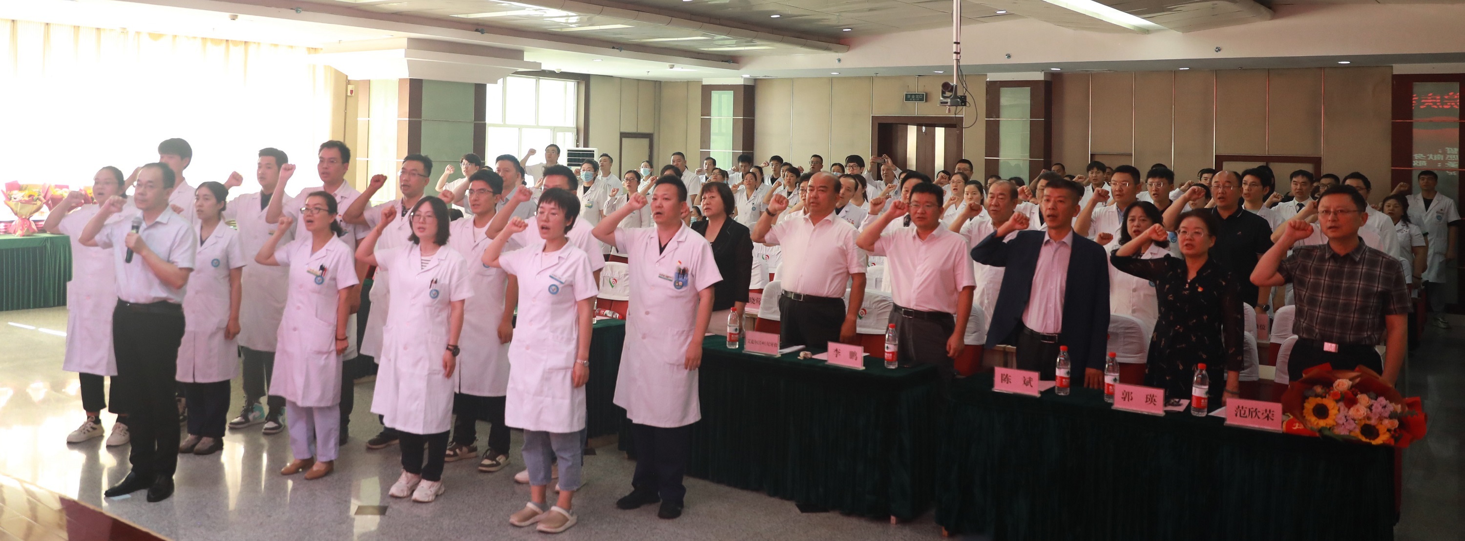 表彰大会上,与会医务人员重温《中国医师宣言》。