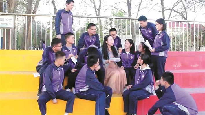 房丽(中)和学生们一起交流学习心得(资料图片)。九师龙珍高级中学提供
