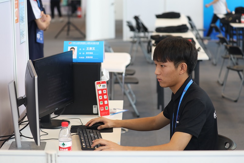 CAD机械设计(世赛)项目选手张志伟在参加比赛。