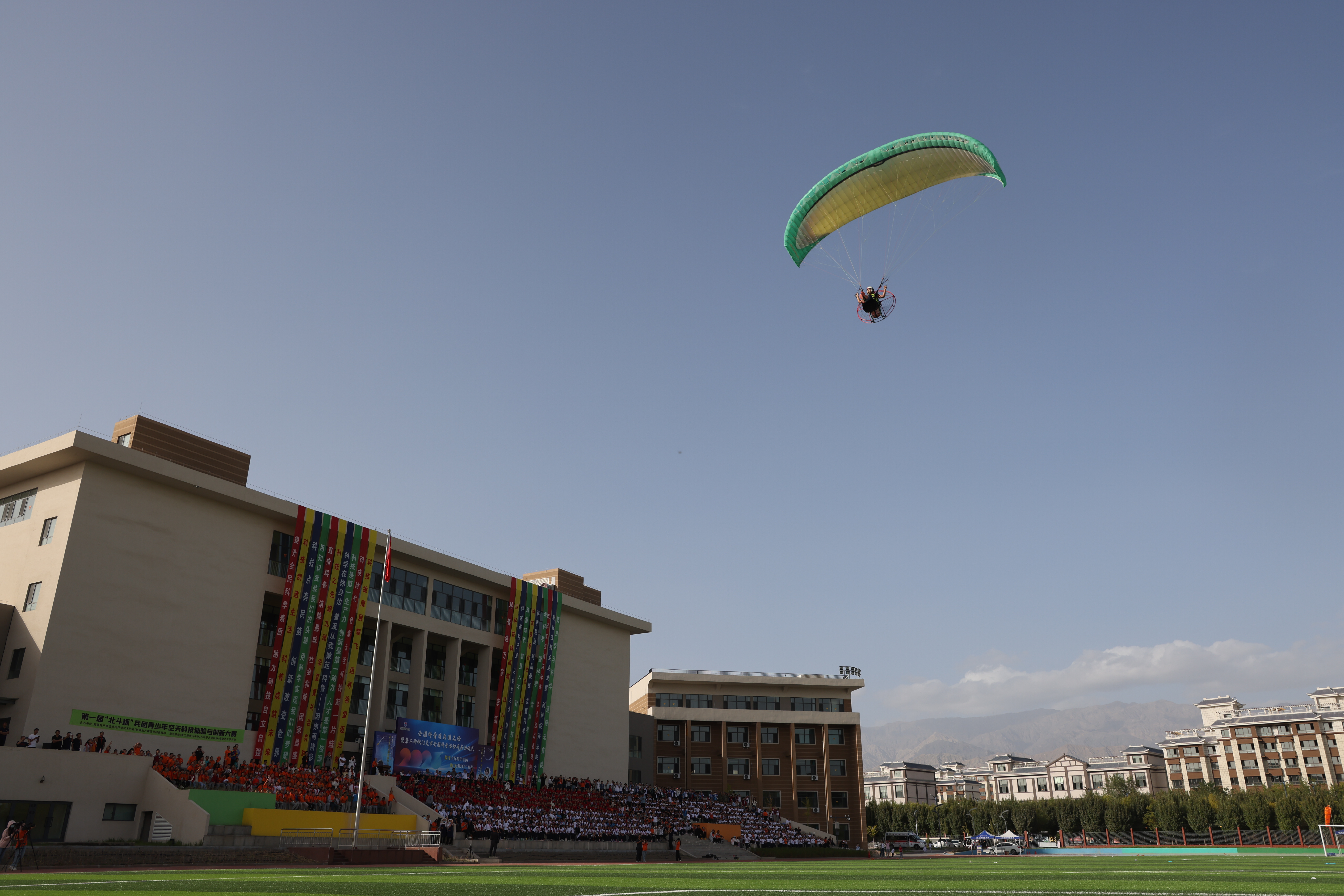启动仪式上,航空航天表演、火箭模型发射、遥控纸飞机编队、固定翼飞机飞行、动力伞升空表演等科技范满满,为此次全国科普日活动增添了浓厚的科普色彩。此外,中国科学技术协会“中国飞天梦-科普万里行”志愿团向二师铁门关市科学技术协会志愿队授旗并举行了捐赠仪式。
