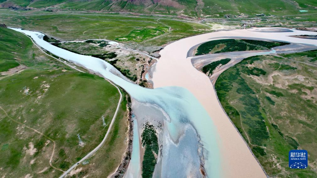 通天河支流聂恰曲的辫状河道(2023年7月25日摄,无人机照片)。辫状河流是一类由多个不规则沙洲分割而形成的浅水多汊道系统。长江正源沱沱河、北源楚玛尔河下游、南源当曲下游及其支流布曲、尕尔曲,以及长江干流通天河上游河段,都以辫状河道为主,组成了一个庞大的高原辫状河群。新华社记者刘诗平 摄