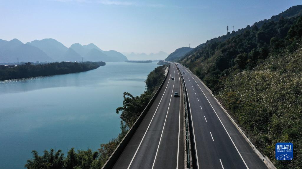 这是广西柳州市融安县融江两岸景色(2021年12月4日摄,无人机照片)。近年来,广西柳州市融安县深化“河湖长制”工作,统筹推进水环境、水生态、水资源、水安全、水文化建设,众手描绘“河畅、水清、岸绿、景美”的生态文明画卷。新华社记者张爱林 摄