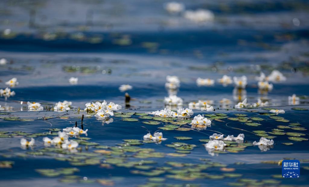 在云南大理洱海中开放的海菜花(2020年5月31日摄)。在云南大理洱海,被视为“水质风向标”的海菜花一度难觅踪迹。2016年底,云南省开启抢救式保护工作,全面打响洱海治理攻坚战。如今海菜花又在清澈的湖水中随波荡漾。新华社记者江文耀 摄