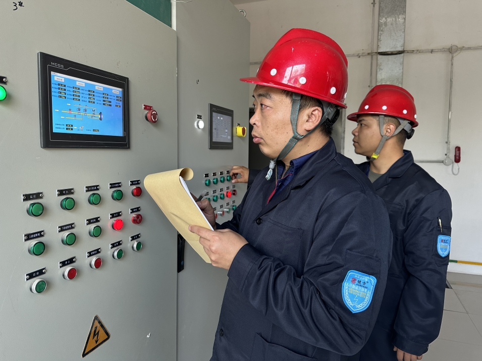 工作人员观察记录设备运行情况