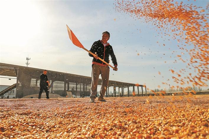 11月1日,二师二十五团四连职工在兵地共建的本布图蔬菜交易市场晾晒玉米。 兵团日报常驻记者 魏承亿 通讯员 丰溢萱 摄