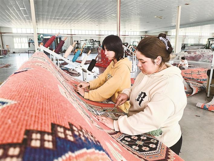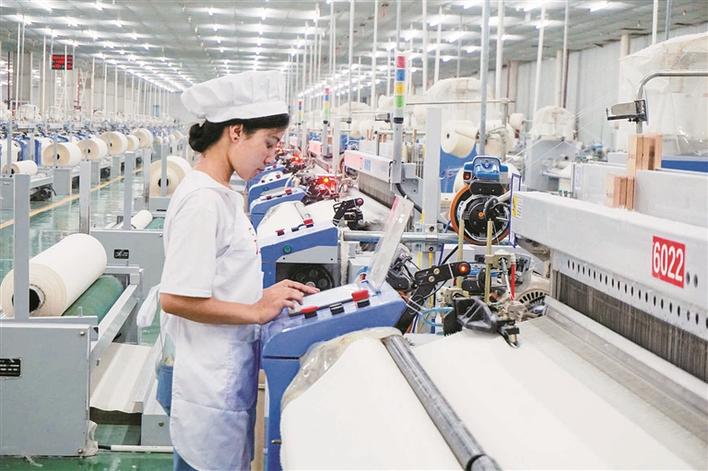 图木舒克经济技术开发区新疆富威毯业有限公司生产车间内,工人忙着赶制订单产品(资料图片)。图木舒克经济技术开发区推行“一个项目、一名领导、一套班子、一抓到底”的项目服务机制,为企业提供全天候、全方位和全生命周期的服务,全力打造优良营商环境。田欣欣 摄