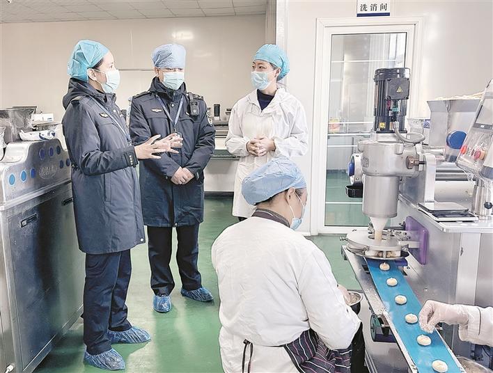 12月5日,十三师新星市市场监管综合行政执法支队执法人员,在对辖区内食品加工企业的加工流程和卫生情况进行检查。兵团日报全媒体记者 赵宝山 通讯员 李欣奕 摄