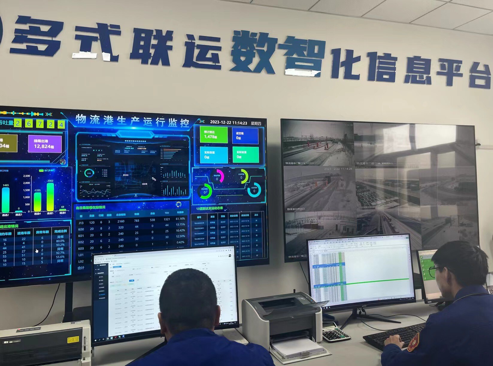 12月22日,在中新建物流集团的多式联运数智化信息中心,工作人员在调度班列信息。兵团日报全媒体记者 朱丹丹 摄