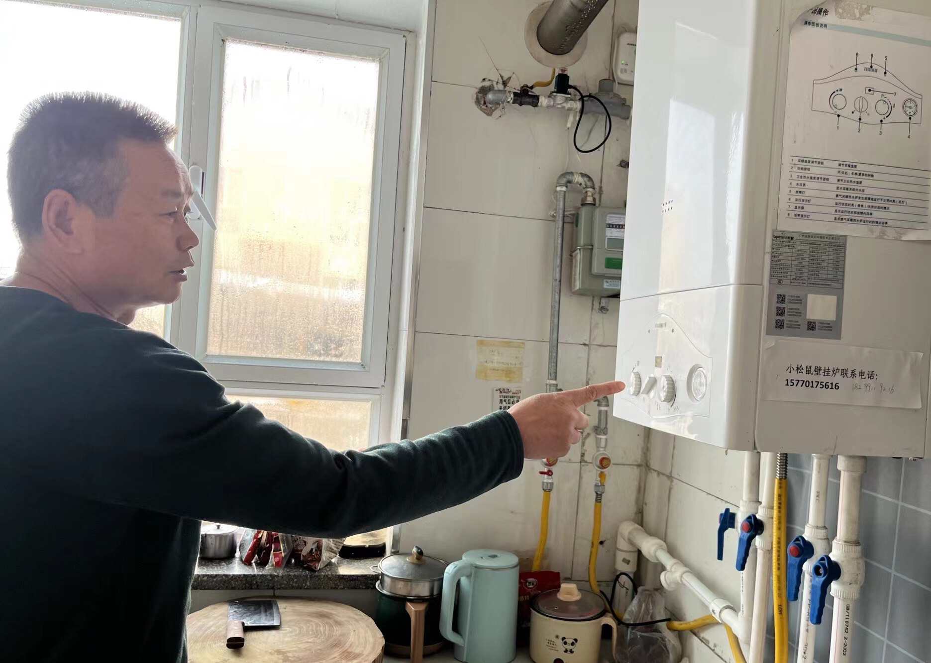 室外天寒地冻,屋内暖意融融。与以往农家常见的取暖场景不同,张恒辉的家中不见炉子,没有烟囱,更闻不到烧煤味,在厨房内一处墙面上挂着一个壁挂炉,一排洁白的暖气片顺着墙边铺展开来,房间里还摆放了几盆绿植。