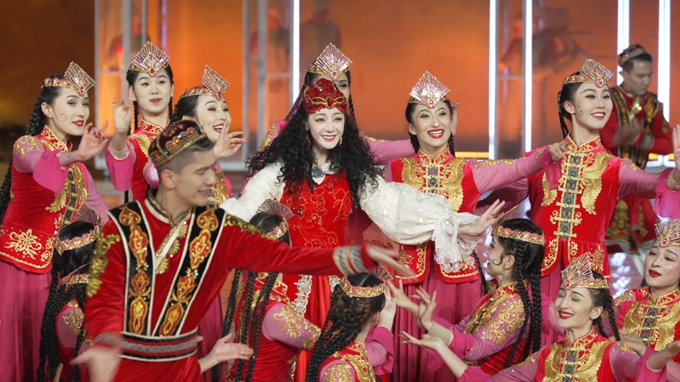艾热、迪丽热巴、于朦胧、王宏伟等用精彩绝伦的表演,展现出新时代新疆青年的风采,唱出新疆各族儿女对家乡美好明天的祝福,让人真切感受到新疆的宽广与热情,为观众呈现了一幅精美的新疆画卷。