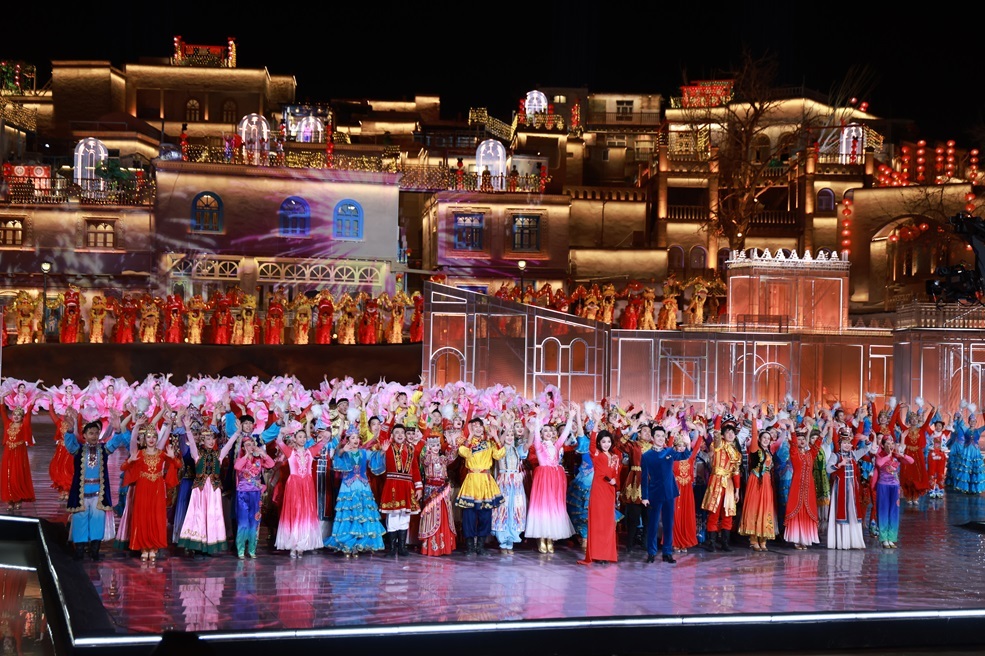 2024年总台春晚喀什分会场演出随着全体演员的挥手落幕。