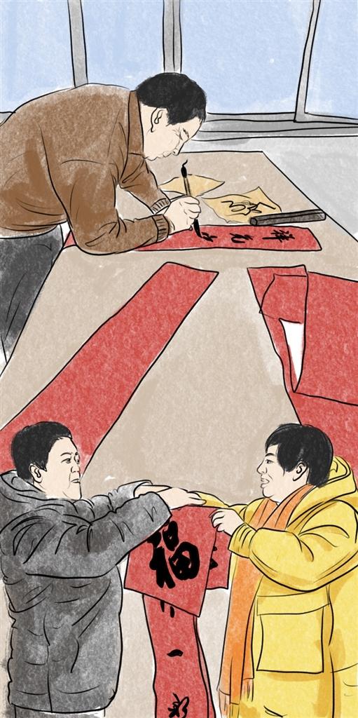 我至今还清晰地记得,彼时,已步入中年的父亲,用他粗糙的双手裁开大红纸,手持狼毫饱蘸浓墨,然后提按顿挫笔走龙蛇的神情。