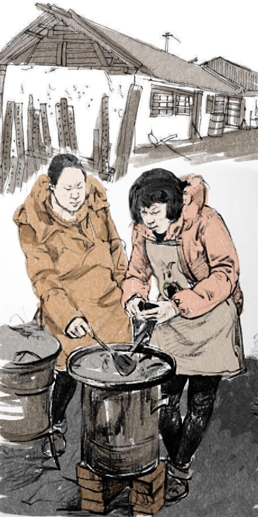 那顿年夜饭,我们吃了很长时间,话也谈得很投机。期间,柳智才起身往炉子里添了四五次煤,放在炉子上的盘子和碗,漆都被烤黄了我们都全然不知……不知不觉中,窗外已经有些微亮了。
