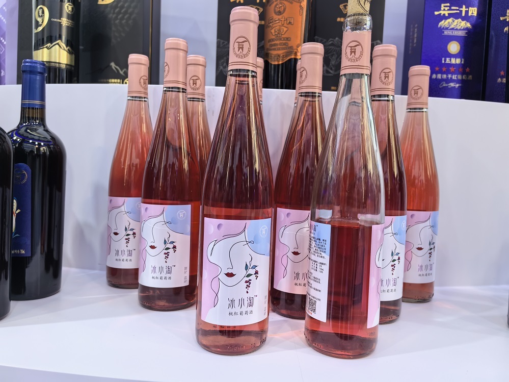 “我们这次带来的酒品中最受欢迎的就是新品冰小淘桃红葡萄酒,粉嫩的颜色十分吸引人,在制作工艺上与干红不一样,采用的都是兵团二十四团的赤霞珠葡萄,并且不添加任何色素香精,闻起来有浓郁的果香,口感非常适合年轻人。”新疆兵二十四葡萄酒业有限公司工作人员贺玮说。