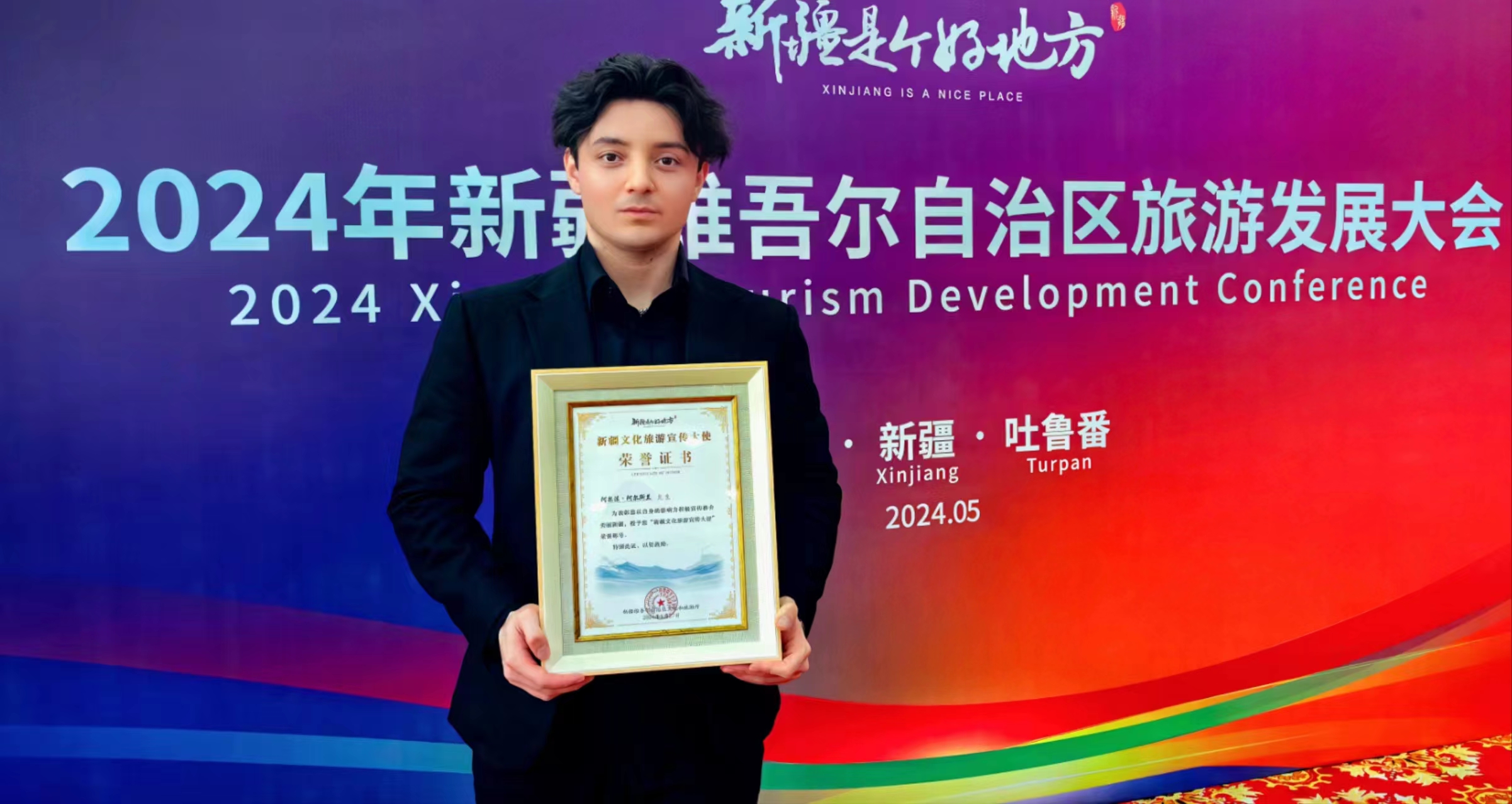 2024年自治区旅游发展大会上,阿尔法·阿尔斯兰获授“新疆文化旅游宣传大使”。