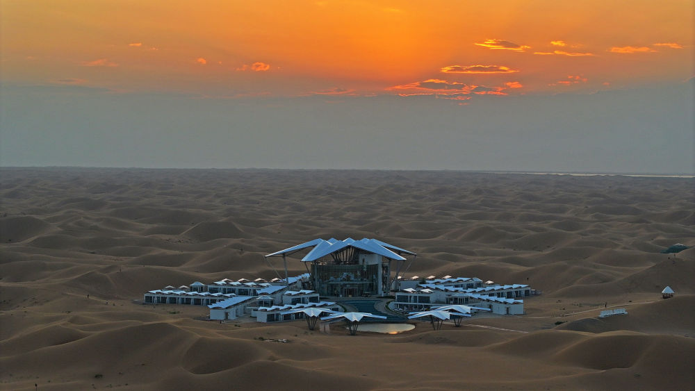 这是位于宁夏中卫市沙坡头景区的星星酒店(2023年9月6日摄,无人机照片)。新华社记者 王鹏 摄
