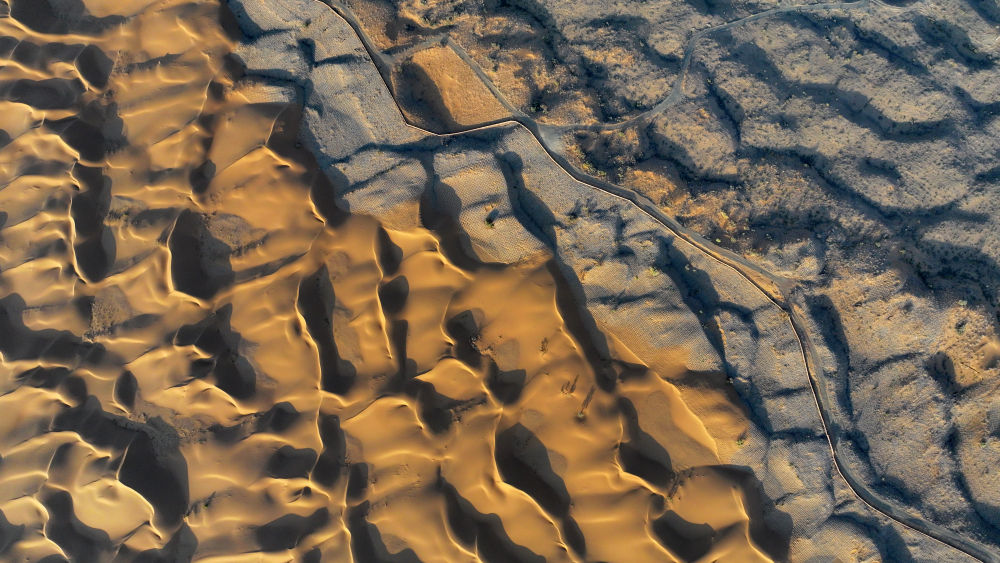 这片黄沙横跨宁夏和内蒙古两地,属于毛乌素沙地。不久前,这里刚刚打了一场省际联手治沙的攻坚战。