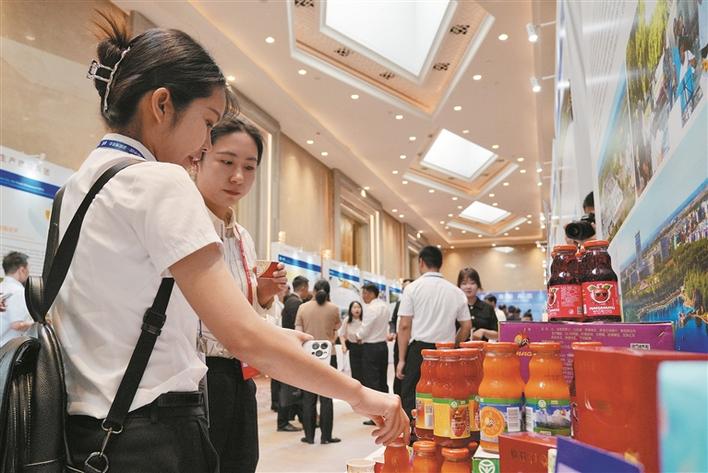 农业是兵团的优势产业,走进各师市投资合作形象展区,三师图木舒克市的“绿糖心”冬枣、一师四团的树上干杏、十师北屯市的“傻老大”瓜子等耳熟能详的兵团名优特展品琳琅满目。在二师铁门关市投资合作形象展区,精深加工的番茄籽油系列化妆品备受客商青睐,频频有人前来咨询;在九师白杨市投资合作形象展区,印象中酸涩的沙棘果摇身一变,成了高端大气的沙棘精华液、沙棘血肽保健饮品;在十四师昆玉市投资合作形象展区,红枣创意咖啡、红枣普洱茶饮香气扑鼻,吸引客商和观众驻足品尝……