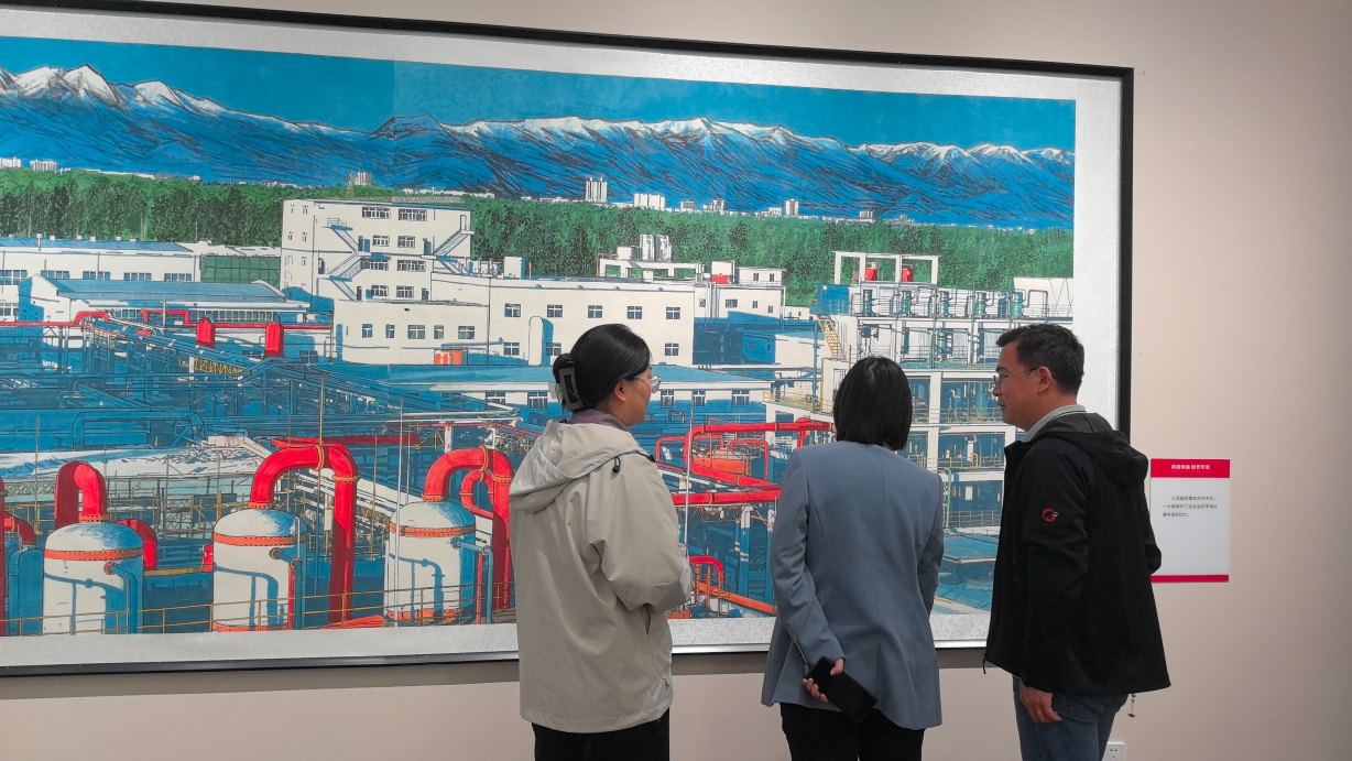 这幅作品展现兵团人与新疆各族人民一起共建美丽新疆、繁荣兵团的美好画面。