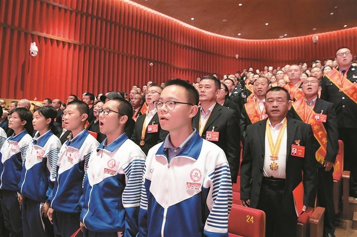 10月6日晚,在庆祝新疆生产建设兵团成立70周年文艺晚会现场,观众齐唱《歌唱祖国》。 兵团日报全媒体记者 张鑫 摄