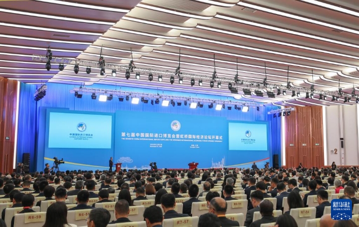 11月5日,第七届中国国际进口博览会暨虹桥国际经济论坛开幕式在国家会展中心(上海)举行。这是开幕式现场。