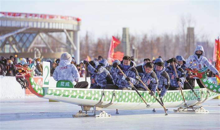 十师北屯市2024年冰上龙舟比赛(资料图片)。近年来,十师北屯市积极融入中国(长白山脉—阿尔泰山脉)冰雪经济高质量发展试验区建设,大力发展冰雪运动、冰雪产业和冰雪旅游,做足做好“冰雪文章”,培育新的经济增长点。兵团日报常驻记者 李正虎 摄