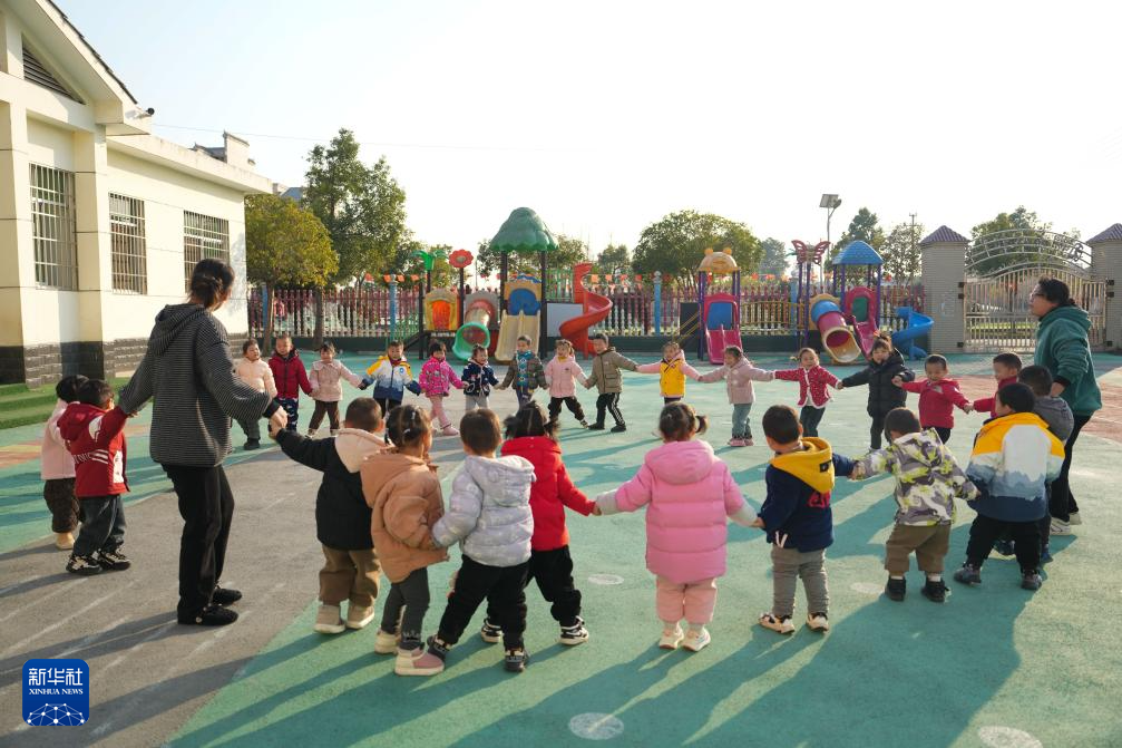 12月18日,孩子们在湖南省岳阳市华容县团洲中心幼儿园玩耍。今年7月,团洲乡团洲垸洞庭湖一线堤防发生决口,团洲乡绝大部分被淹。