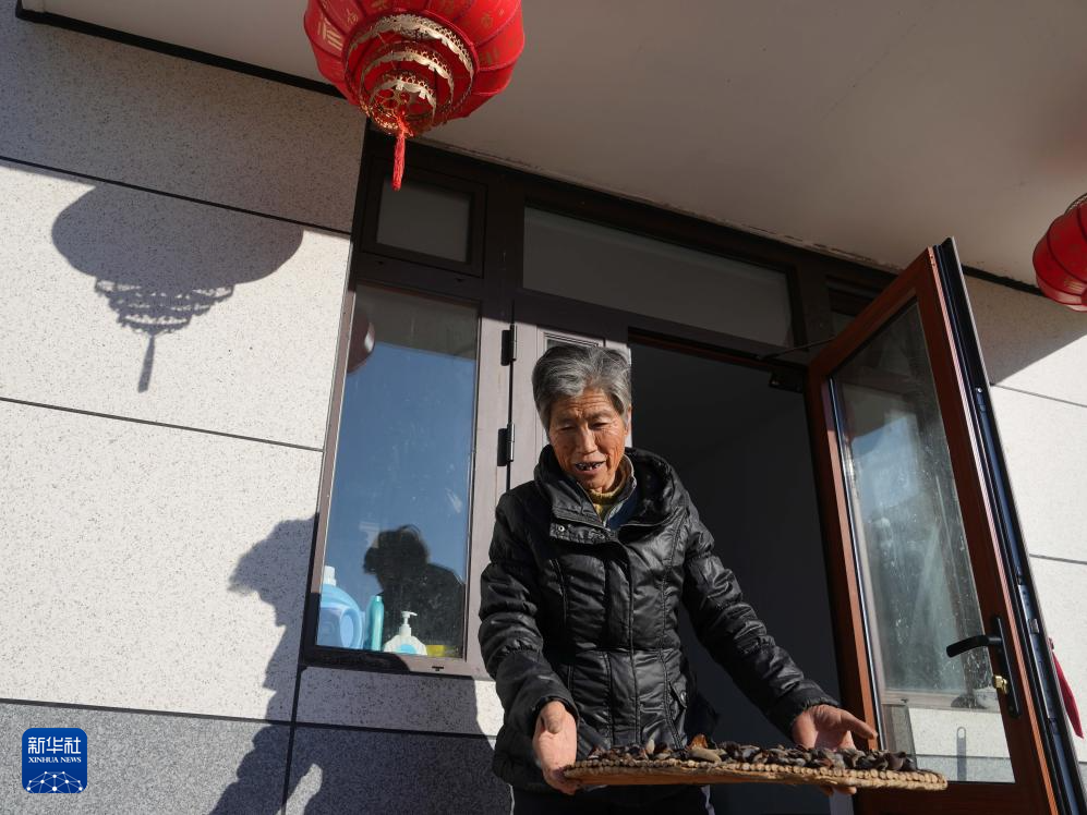 12月17日,葫芦岛市建昌县黑山科乡杨树底下村村民在新家晾晒木耳。今年8月,建昌县遭遇特大暴雨引发洪灾,黑山科乡杨树底下村受灾最重。