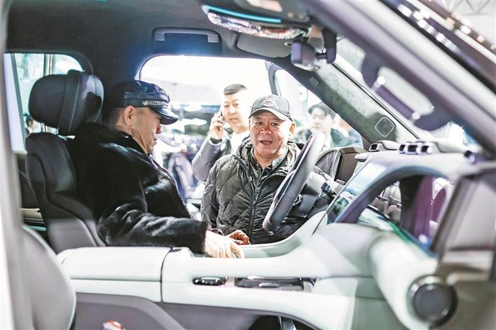 1月16日,在十二师新疆天恒基国际汽车文化城的全疆首家仰望品牌门店内,消费者在看车选车。兵团日报常驻记者 冯晓玲 摄