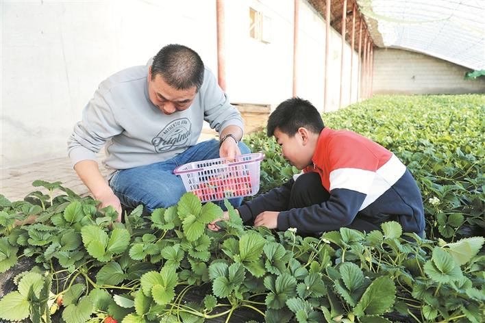 在十二师三坪农场草莓主题公园的温室大棚内,乌鲁木齐市游客在采摘草莓(摄于2月13日)。兵团日报常驻记者 冯晓玲 通讯员 马玉洁 摄