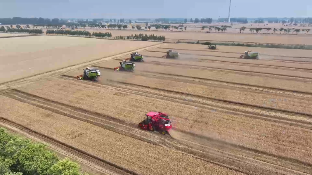夏收顺利,离不开智能收割机帮忙。记者在河南省南阳邓州市腰店镇看到,一望无垠的金色麦田里麦浪阵阵,机声隆隆。6台小麦联合收割机正一字排开,在麦田中“过招”,比拼机收减损水平。这场机收减损技能大比武活动标志着当地小麦迎来大面积机收。
