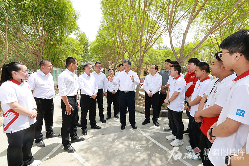 5月27日,自治区党委书记马兴瑞来到阿图什市哈拉峻乡谢依特小学,亲切看望戍边支教西部计划志愿者服务队队员,同大家热情交流,关切询问工作生活情况。天山网-新疆日报记者 崔志坚 摄