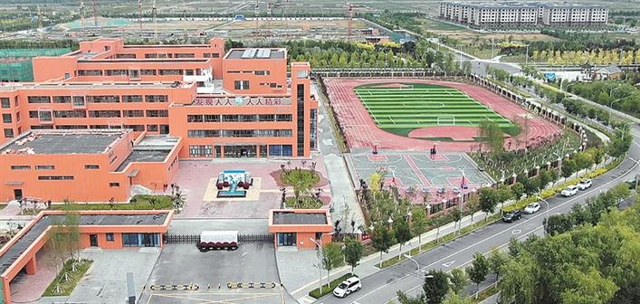 可克达拉市第一小学俯瞰图(资料图片)。截至目前,镇江市累计投入教育援疆资金5.9亿元,建成可克达拉市镇江高级中学、金山实验学校、可克达拉市第一小学等教育项目19个,进一步改善了当地的办学条件。李广啸 摄