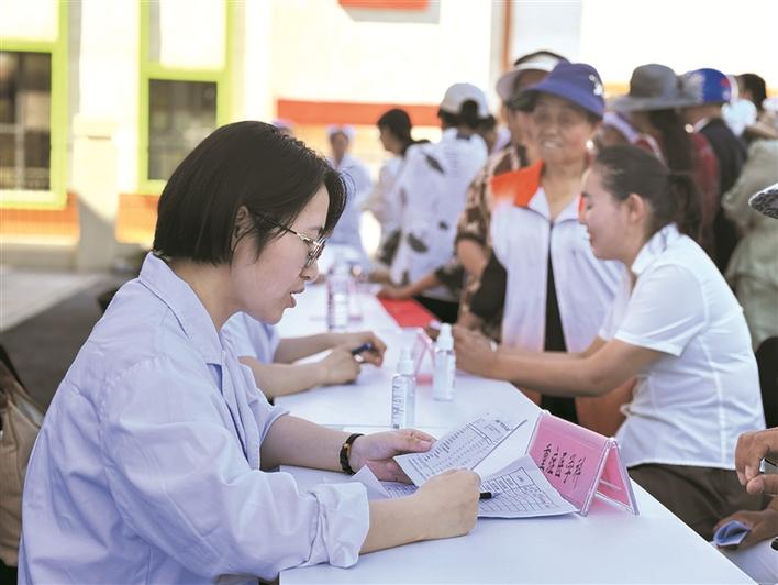 7月4日,镇江援疆医疗队的专家们在可克达拉市金山街道卫生服务中心进行“云端天使”健康义诊。季晓燕 摄