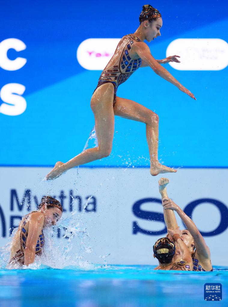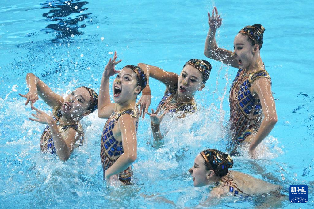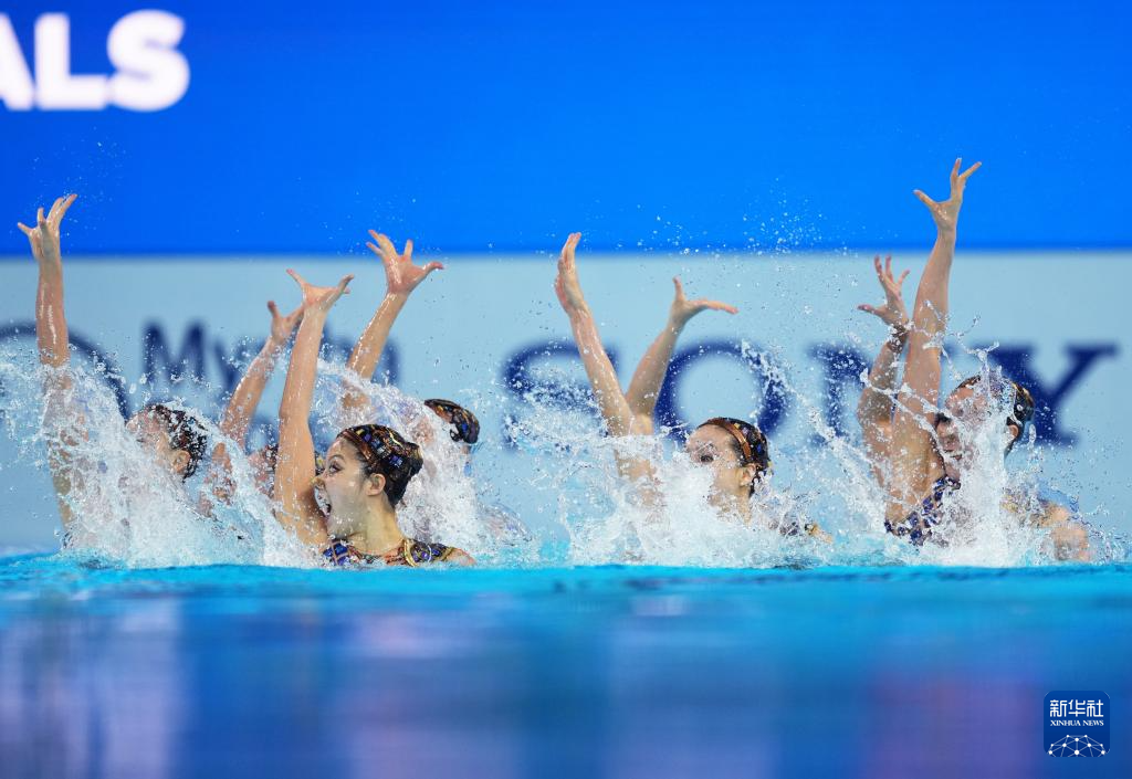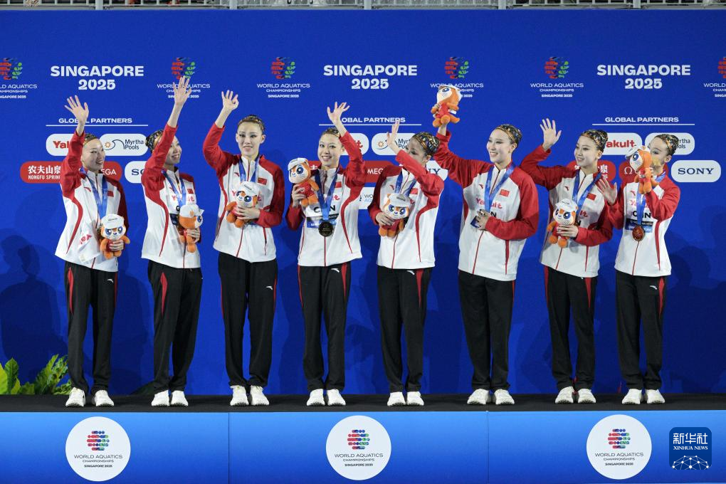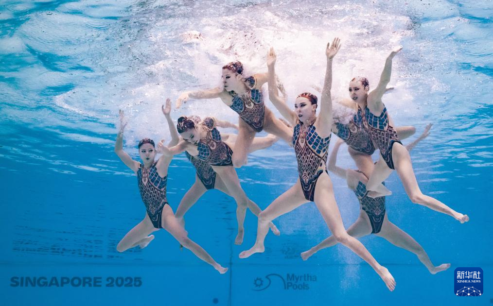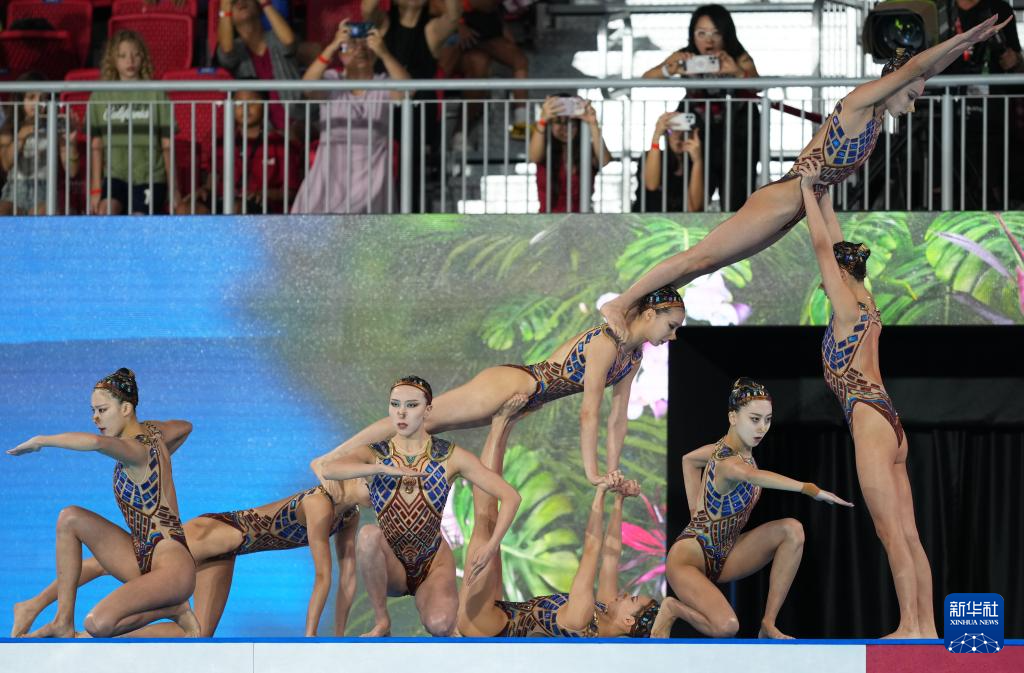 当日,在新加坡举行的2025年世界游泳锦标赛花样游泳集体技巧自选决赛中,中国队夺得冠军。