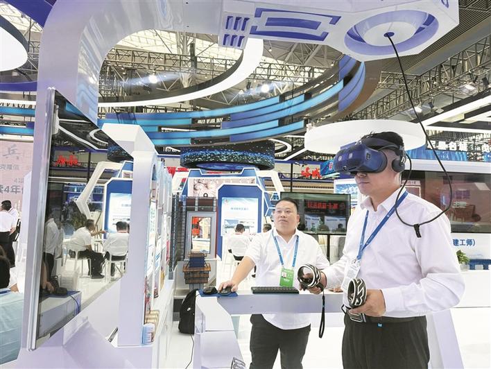 2025(中国)亚欧商品贸易博览会十一师形象展区,观众正在体验VR体感行走平台(摄于6月27日)。古力米拉·亚力坤 摄