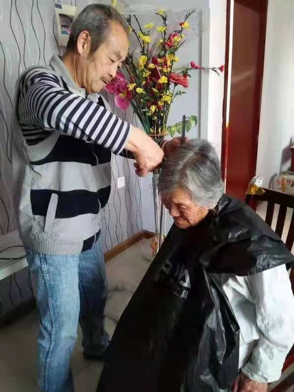 黄金井入户为老人义务理发。