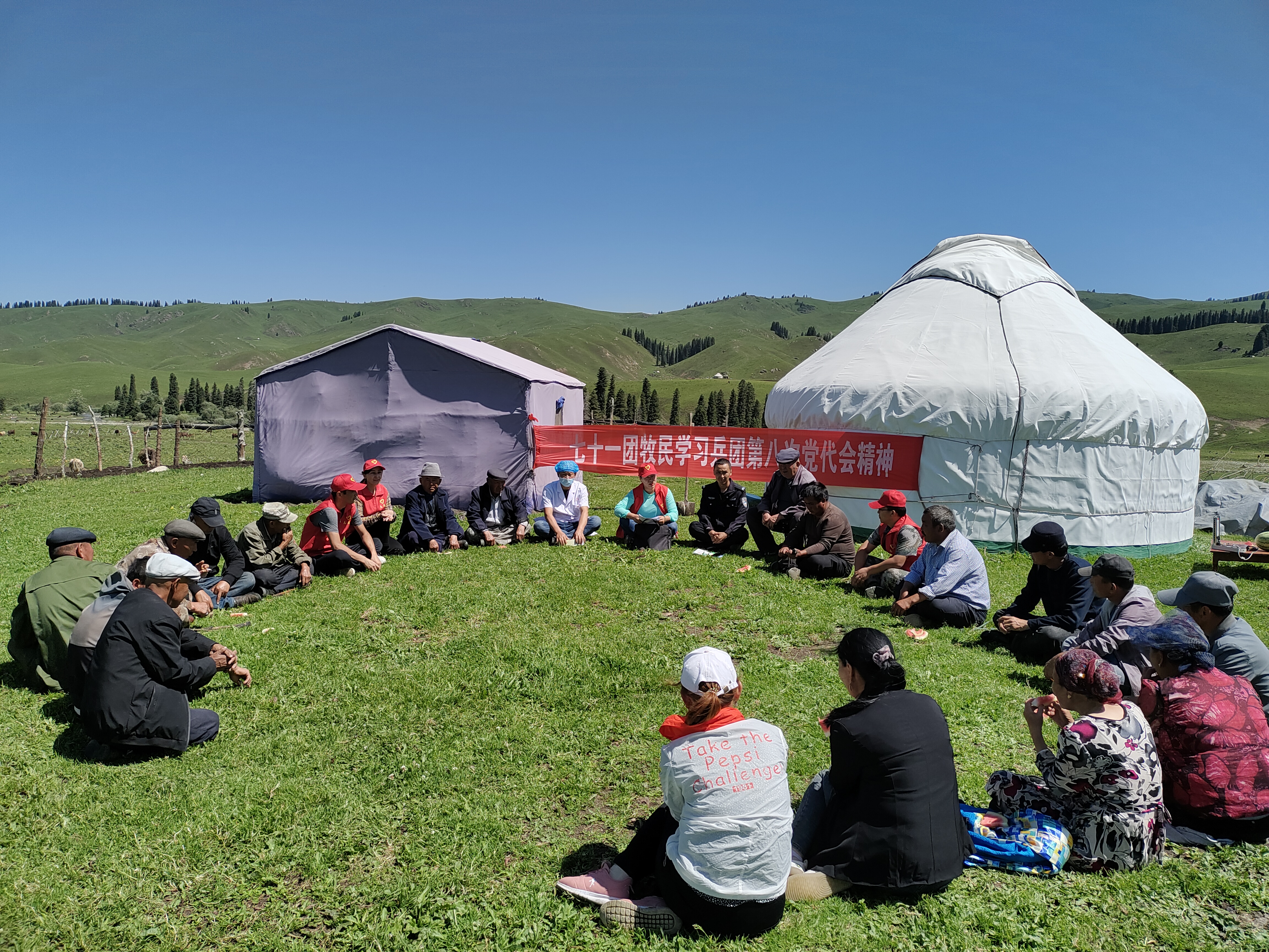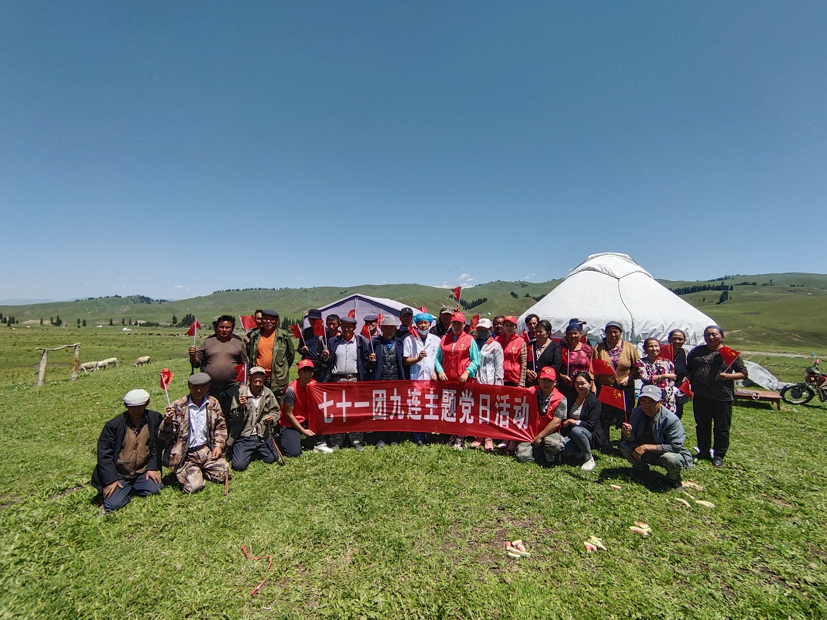 2023年7月25日,沙拉古丽带领支部党员在夏牧场开展主题党日活动。