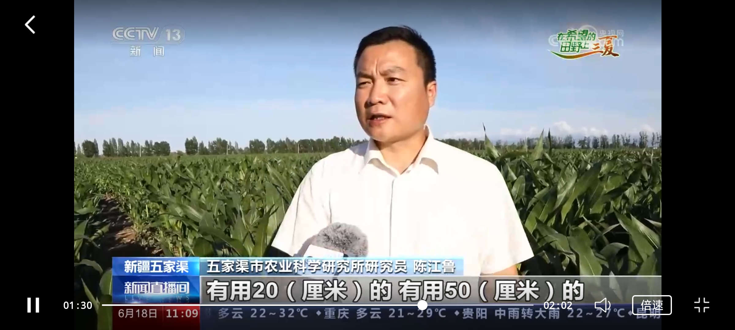 2023年6月18日,CCTV 13报道六师农科所陈江鲁(截图)。