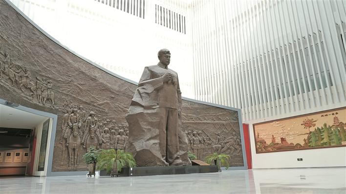大厅两侧墙壁上,巨幅浮雕刻画着军垦战士挥镐垦荒、持枪戍边的场景。高耸的空间、肃穆的灯光、回荡的兵团歌曲,共同营造出一派庄严氛围。