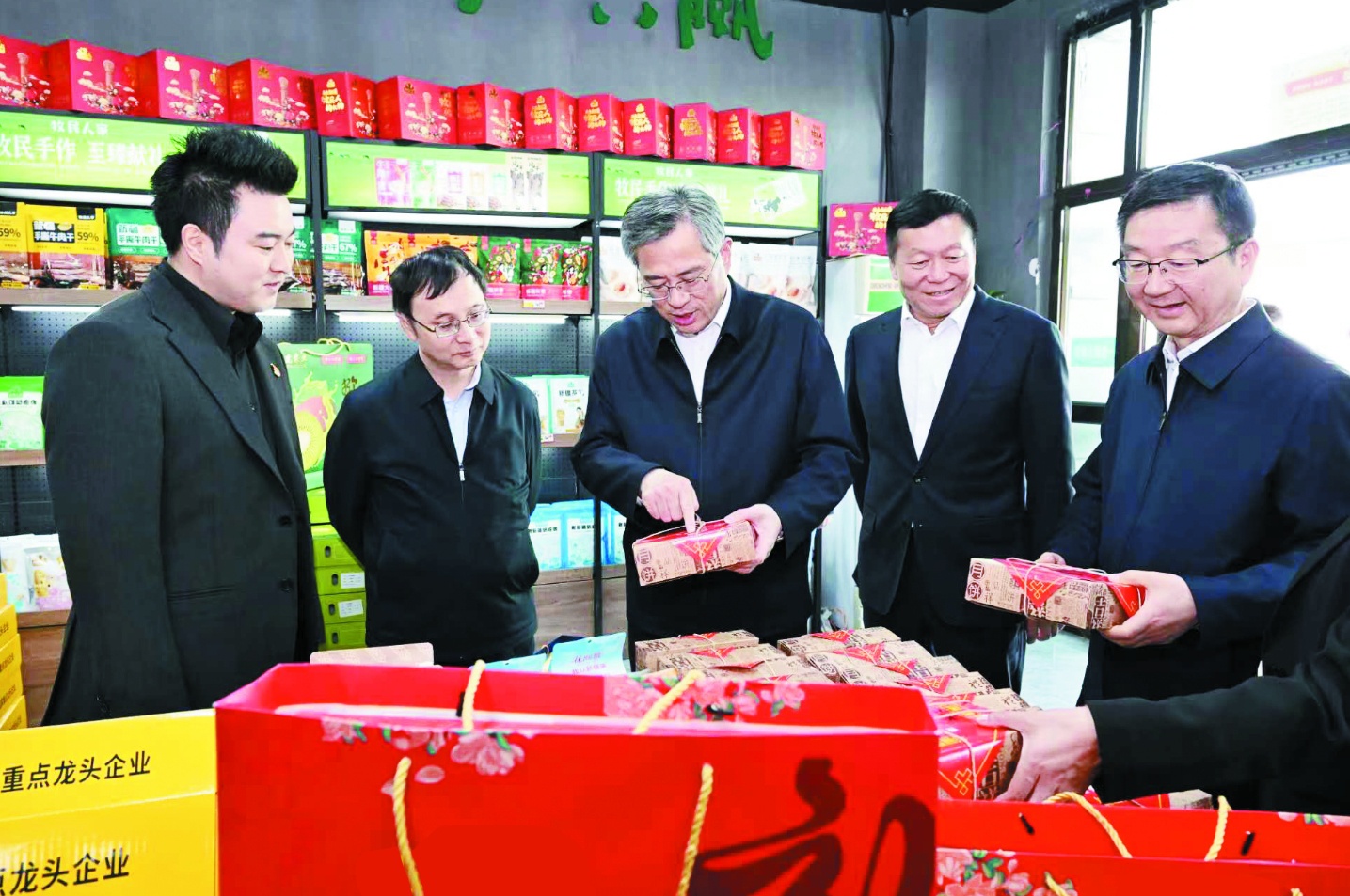 9月30日,自治区党委副书记、兵团党委书记、政委何忠友,自治区副主席、兵团党委副书记、司令员薛斌到十二师调研民生保障和安全生产工作。这是何忠友、薛斌来到九鼎农产品批发交易市场果大大公司,了解月饼市场行情。兵团日报全媒体记者 张鑫 摄