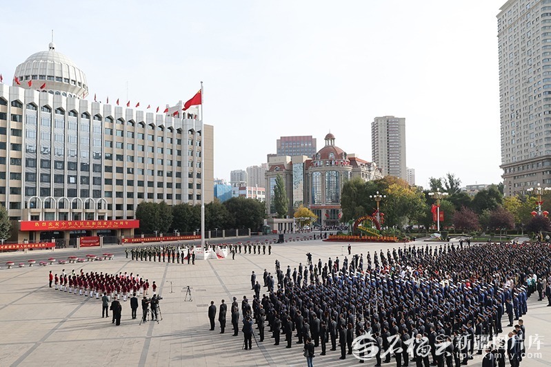 10月1日,自治区在乌鲁木齐隆重举行升国旗仪式,热烈庆祝中华人民共和国成立76周年。天山网-新疆日报记者 谢龙 摄