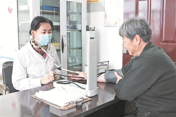 在石河子天健养老院,一名护士为老人测量血压(资料图片)。为建设一支高水平、高层次的养老服务人才队伍,八师石河子市组织基层医护人员开展预防保健、疾病诊疗、康复护理、长期照护等全流程老年健康服务培训,提高他们的专业技术水平和服务能力。史军红 摄