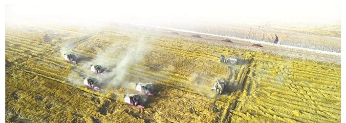 一师六团十一连的万亩连片耐盐碱水稻示范田喜获丰收(资料图片)。魏九龙 提供