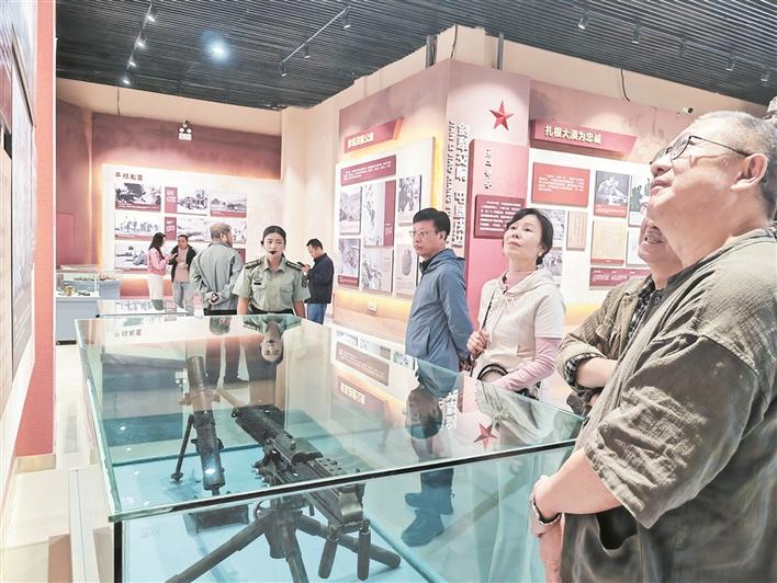 9月26日,参加“文润南疆·情系昆仑”全国文学名家走进昆玉暨第十九届乡愁笔会的名家和文学爱好者在十四师四十七团参观中国人民解放军进军和田纪念馆。兵团日报全媒体记者 陈永峰 摄